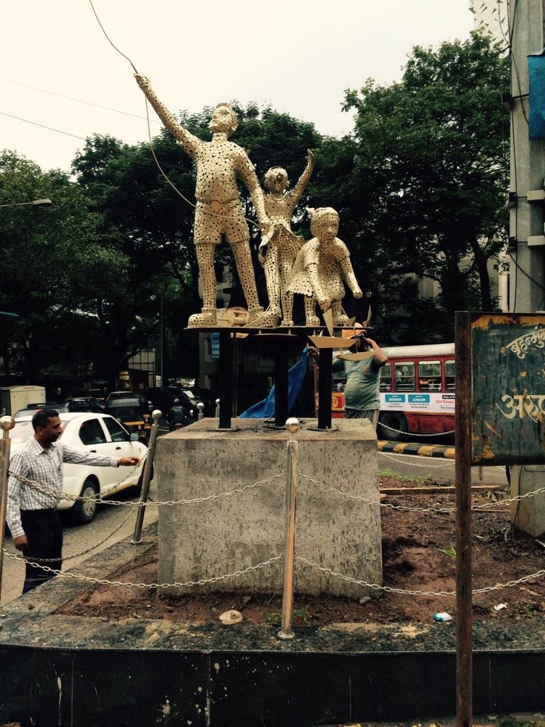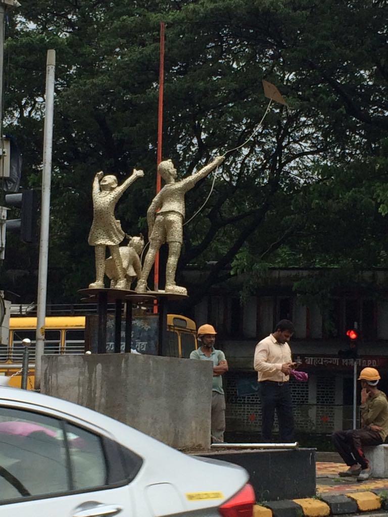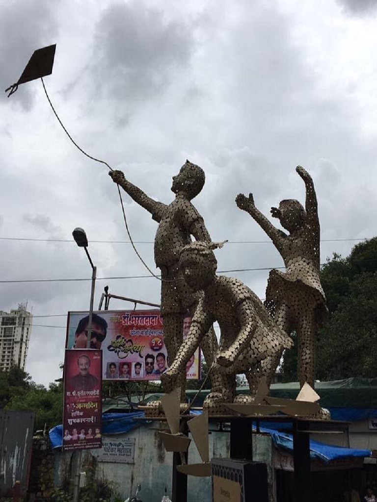 Three child playing work at chowk area in Mulund thane material in MIld steel.