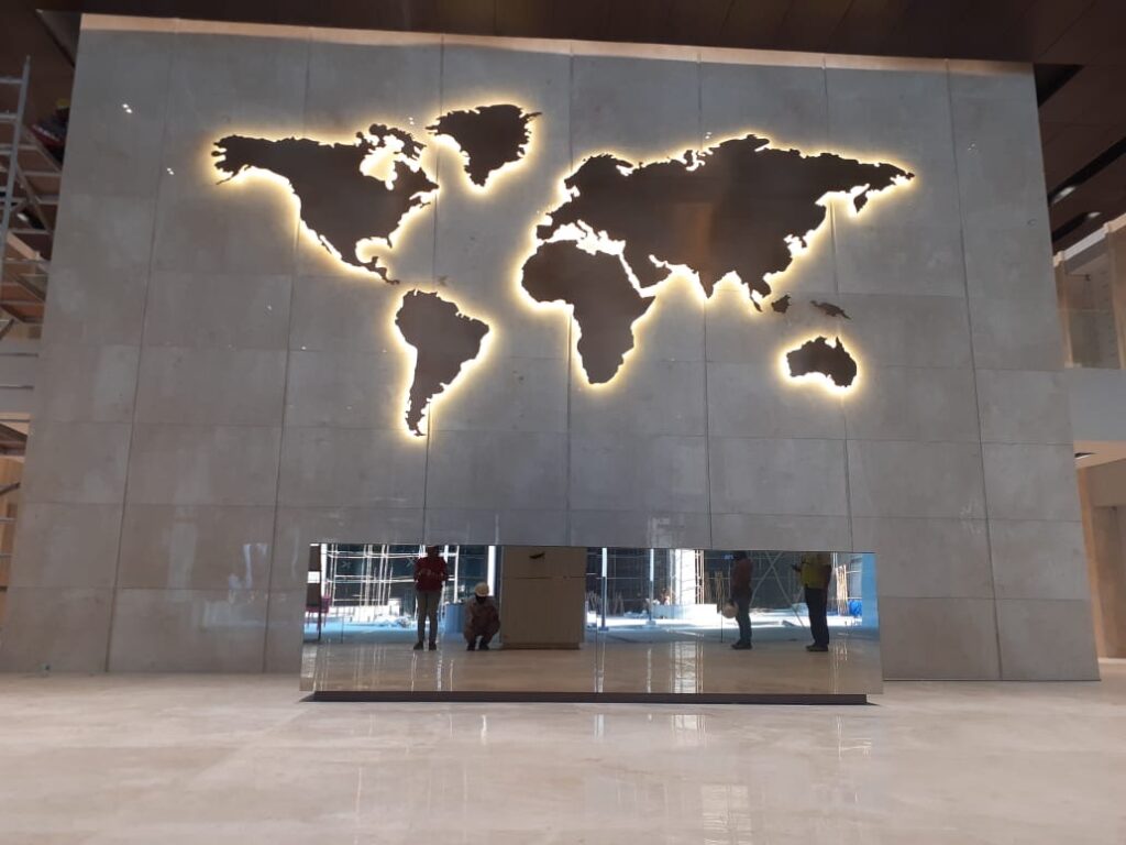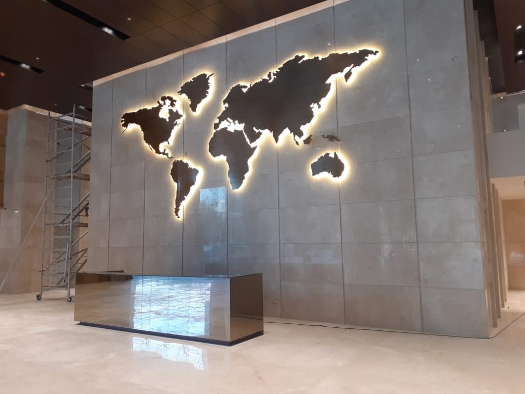 World map sculpture material in SS and worked for Bagmane company at Bangalore